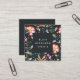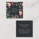 Elegant floral business cards in a unique square shape feature a background pattern of brightly coloured flowers and greenery with your name or company name and title displayed in white on an inky off-black square. Add your full contact information to the reverse side. Perfect for wedding planners, event planners and other special occasion professionals.
