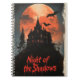 This eerie and atmospheric poster design, titled "Night of the Shadows," features a silhouetted haunted house perched atop a dark hill against a large, ominous orange full moon. Bats fly across the night sky, adding to the spooky ambiance. The vintage, slightly distressed style enhances the classic horror theme, perfect for Halloween, spooky events, or fans of gothic and macaber art.