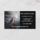 Halloween business card featuring a landscape scene with an owl and bats at full moon.