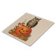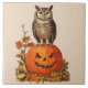 NIGHT OWL ON HALLOWEEN PUMPKIN AND AUTUMN LEAVES TILE
