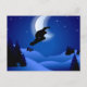 Cool Night Silhouette Snowboarding Mountain and Moon Postcard.