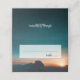 Elegant wedding place card template. Background is a beautiful photograph of a dark turquoise blue night sky with a galaxy of stars above and a sunrise over mountains below. All the text is easily customized, appearing in a stylish combination of script and sans serif typography.