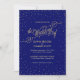 Tiny, glittery gold stars sparkle in confetti clouds around the edge of this beautiful deep navy blue wedding invitation, with a gold glitter effect script reading, "the Wedding of". Fancy, chic and enchanting all at once. Perfect for a night-time wedding under the stars. Original artwork by Colleen Michele. Please note, there is not a real gold glitter or gold leaf effect on the stars and script; no actual glitter, gold leaf or metallic ink will be used in this invitation.