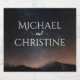 Night sky wedding under the stars. Night sky astrophotography of a stunning snow covered landscape with millions of stars in the sky and bright light. Wedding collection with personalized customizable text.