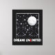 Night sky with moon and stars with dreams quote canvas print