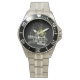 Has heft and feel of expensive stainless steel quartz watches. Good band with safety catch. I removed links, which is easy because engraved arrows show direction to push the linking pins. As always by this seller, the image (a railroad logo) is a perfect reproduction of my emailed image, and is precisely spaced and aligned.