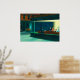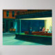 Edward Hopper - Nighthawks, 1942. That portrays people in a downtown diner late at night as viewed through the diner's large glass window. The light coming from the diner illuminates a darkened and deserted urban streetscape.