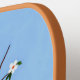 This product displays an image of a Nightingale bird, happily chirping away in a tree full of white blossoms. The original image was painted by the artist W.B. with acrylic paint.