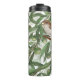 Hand-painted watercolor pattern with 2 nightingales perching on olive branches