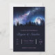 Beautiful Wedding Invitation with a blue and purple colour scheme which shows a dark forest, a full moon and a sky full of stars.