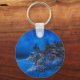 Nighttime winter scene with snow covered pine forest in a moon light at starry night. Panoramic view of coniferous forest with wooden pathway near sea coast against beautiful night sky with stars.