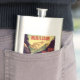 The product is a good size and came exactly as it was pictured. The lid is not attached to the flask, which could be dangerous on drunken nights... The print came out surprisingly well and looks very sharp. Would definitely recommend.