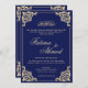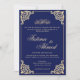 Baroque Nikah Ceremony Islamic Muslim Wedding Invitation. A navy blue colour card with a gold vintage border frame in the corner. Script calligraphy on top. You can personalize this item by changing the information that is written. You can add text on the second card too. A blank envelope is included. Contact designer for any help with product editing. HerLineForDesign store on Zazzle.