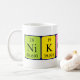 Nikolas spelled out as Ni K O La S (Nickel Potassium Oxygen Lanthanum Sulfur) on a mug for the scientist in you.