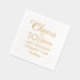 Santé! Ajoutez une touche élégante et personnalisée aux décorations d'anniversaire avec des serviettes en papier gaufré personnalisées. Ce modèle est conçu pour une célébration d'or du 50e anniversaire, mais il est simple à personnaliser pendant un certain nombre d'années. Le design en papier métallique blanc et or présente une disposition moderne, une calligraphie de script élégante et une typographie vintage classique. Ces serviettes de cocktails élégantes apportent une touche customisée unique à une fête spéciale. Joyeux anniversaire et félicitations pour la célébration du jalon !
