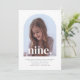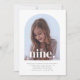 A simple 9th Birthday invitation featuring your own photo in an arch shape and the words 'nine.' over the top.