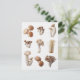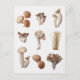 This postcard features photos of nine brown mushrooms in the style of a vintage botanical print.