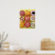 Asset ID: 98310482 / Rosemary Calvert / Nine cupcakes each decorated with candy in a unique vibrant coloured design, placed in three rows of three on a yellow background.