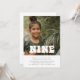 A 9th Birthday invitation featuring your own photo and the word 'nine' in a groovy style font over the top. Perfect for your retro themed Birthday party!
