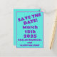 Nineties Purple on Teal Wedding Save-the-Date Postcard