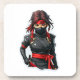 Cool Ninja Girl Action Figure in black and red costume with a mask transparent background Graphic vector