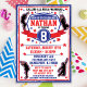Un design d'invitation mignon pour la prochaine fête d'anniversaire Ninja Warrior de votre enfant. Fêtez la fête d'anniversaire de votre enfant sur le thème du phénomène qui est American Ninja Warrior! Que vous organisiez la fête dans un centre de guerriers Ninja, une salle de gym de l'école, une salle de gym privée ou pourquoi ne pas créer un cours maison dans le jardin. Les enfants seront très impressionnés par cette invitation customisée dans les couleurs du drapeau américain, bleu, blanc et rouge. Veuillez consulter d'autres articles correspondants dans mon magasin et un thème garçons correspondant est également disponible. www.invitecentral.com