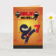 Fun cartoon Ninja Kicking it birthday gift for boys of girls with great graphics and text template fields for you to add a name and age.