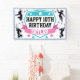 Your guests will be super impressed with this customized banner in pink, teal and white