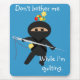 You don't have a little ninja to fight off all who interrupt your sewing time? Well you need to get one! A humourous depiction of a serious quilter's need for peace. This little ninja will fight for your right to sew. Use the customize button to change the text, style or background colour. Customize to your needs. Original design by Rebecca of Night Owl's Menagerie, copyright 2011.
