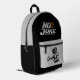 Lightweight and durable, our NO JOKE FOOTBALL QB Backpack is just what you need. The spacious interior is ideal for travel, school, gym, or any mobile storage need. Bring your stuff with you in style! Features Adjustable padded shoulder straps, two chambers on the inside for laptop storage, mesh side pockets and an identification label.