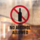 No alcohol allowed drinking prohibited window cling sign for glass surface. Custom warning signs for public places, library, hotel, shop, store, office, swimming pool, airport, school, boat etc. Make your own caution signage with wine bottle logo and red prohibited circle / cross symbol. Handy for instructing newcomers, customers, clients, visitors, guests, tourists, alcoholics etc. Prevent alcohol nuisance with easy to understand symbols regarding wine, beer, liquor etc.