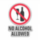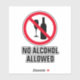 No alcohol allowed wine glass and bottle silhouette vinyl Sticker. Custom public drinking warning signs for public places, library, hotel, shop, store, office, swimming pool, airport, school, hospital, boat etc. Make your own strictly prohibited signage with open wine glass silhouette and red prohibited circle / cross symbol. Handy for instructing newcomers, customers, clients, visitors, guests, tourists, alcoholics etc. Stop nuisance with easy to understand caution symbols.