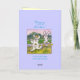 Two cartoon rabbits are out for a walk in the park with some new friends they met who just hatched on a spring day right before Easter. They are six cute cartoon chicks. Front reads: "Easter is a great time for meeting chicks" Inside: "No bun intended". Happy Easter!