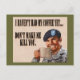 Smiling soldier in an Army uniform with old style canteen cup. Text reads: "I haven't had my coffee yet... Don't make me kill you."