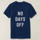 No Days Off is a fun work t-shirt. This shirt is perfect for the person that is a workaholic with a sense of humour. Whether they are a small business owner or someone that likes to get ahead of the competition they rarely take moment to fall behind.