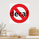 Funny decaf poster for real coffee drinkers. Caffeine rules! Say no to decaffeinated coffee. Stop decaf coldbrew. End light roast decaf coffee. The word "decaf" is covered with a red prohibited symbol (circle with a line through it). Just say "no" to decaf.