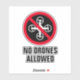 No drone flying allowed custom vinyl sticker Custom strictly prohibited warning signs for public places, safety areas, airfields, airport, landing strip, private residential areas etc. Make your own caution signage with quadcopter silhouette and red prohibited circle / cross symbol. Useful for instructing drone pilots, customers, clients, visitors, guests, tourists, photographers etc. Stop nuisance with easy to understand prevention symbols.