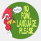 An anti-cussing message featuring a cartoon drawing of an unfortunate, fowl-mouthed rooster.