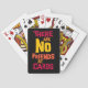Funny playing cards for fun competitive games among friends. The phrase there are no friends at cards is printed in bold lettering in shades of red, orange, and yellow colour and set against a solid black background.
