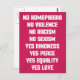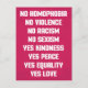 "No homophobia, no violence, no racism, no sexism. Yes kindness, yes peace, yes equality, yes love" quote.