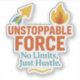 Design: “Unstoppable Force – No Limits, Just Hustle” — bold motivational message