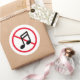 No loud music allowed sound prohibition sign Classic Round Sticker. Custom warning notice stickers for library, living quarters, residential apartment building, flat, shops, museums, business, corporate office, silent room, event, workplace, school room, store, hospital, spa, meditation centre, church, yard, park, zoo, garden and other places. Make your own music note logo caution signage with red prohibited circle and cross symbol. Handy for instructing musicians, customers, clients, visitors, guests, kids, tourists etc. Prevent high volume noise nuisance from music radio, boombox and other sources.