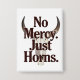Raw, powerful longhorn bull skull with massive curved horns and the bold statement "No Mercy. Just Horns" in brutal typography — pure untamed strength and zero compromise attitude.