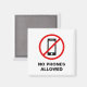 No mobile cell phone allowed forbidden sign symbol Square magnet. Custom warning magnets for safety, security and more. Customizable colours. Handy no cell phone signage for public area, quite space, hotels, motel, bed and breakfast, hospitality business, conference building, home, office space, restaurant, company, school, dorm, university, film studio, school, hospital, care home, bedroom, bathroom, toilet, cloak room, meeting room, editing room etc. Round circle with diagonal stripe. Also handy for tablets. Magnetic caution signs.