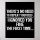 No Need Repeat Yourself I Ignored You Funny Saying Poster