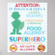 Attention: In this house lives a label reading, epinephrine carrying, food allergy super hero. Please help keep him safe. No Nuts allowed. Food allergy alert sign, no nuts allowed poster. Post outside your home or in your house to help remind others of food allergies. Personalize with name or edit other text. Great for use at school or daycare to help alert others of a food allergy. Girl versions and school versions available. Designs by Lil Allergy Advocates www.lilallergyadvocates.com