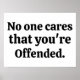 Funny sarcastic quote design: No One Cares That You're Offended. Humourous meme apparel for men and women who loves sarcasm, funny sayings and jokes. It makes a great present idea for dad, mom, brother, sister, friend, coworker, son, daughter… Perfect apparel to have if you are a sarcastic person or love telling jokes, wear this outfit to school, work, outdoors, beach, sport, running, meeting, wedding, camping... Or give it as present in birthday, father's day, mother's day, teacher's day, women's day....