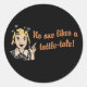 A retro image of a girl wagging her finger with the text "no one likes a tattle tale".