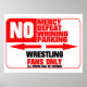 No Parking Wrestling Fans Only design that looks just like a No Parking sign only designed for wrestling fans! Red and white No Parking sign with No Mercy, No defeat, No Whining and No Parking! Wrestling Fans Only, All Others Will Be Crushed! Great wrestling attitude!