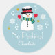 No Peeking Cute Christmas Snowman Snowflakes Blue Classic Round Sticker